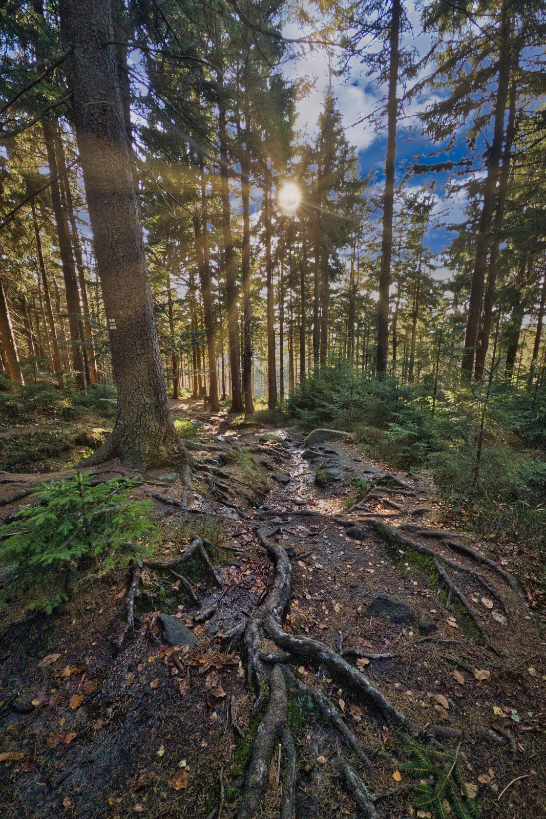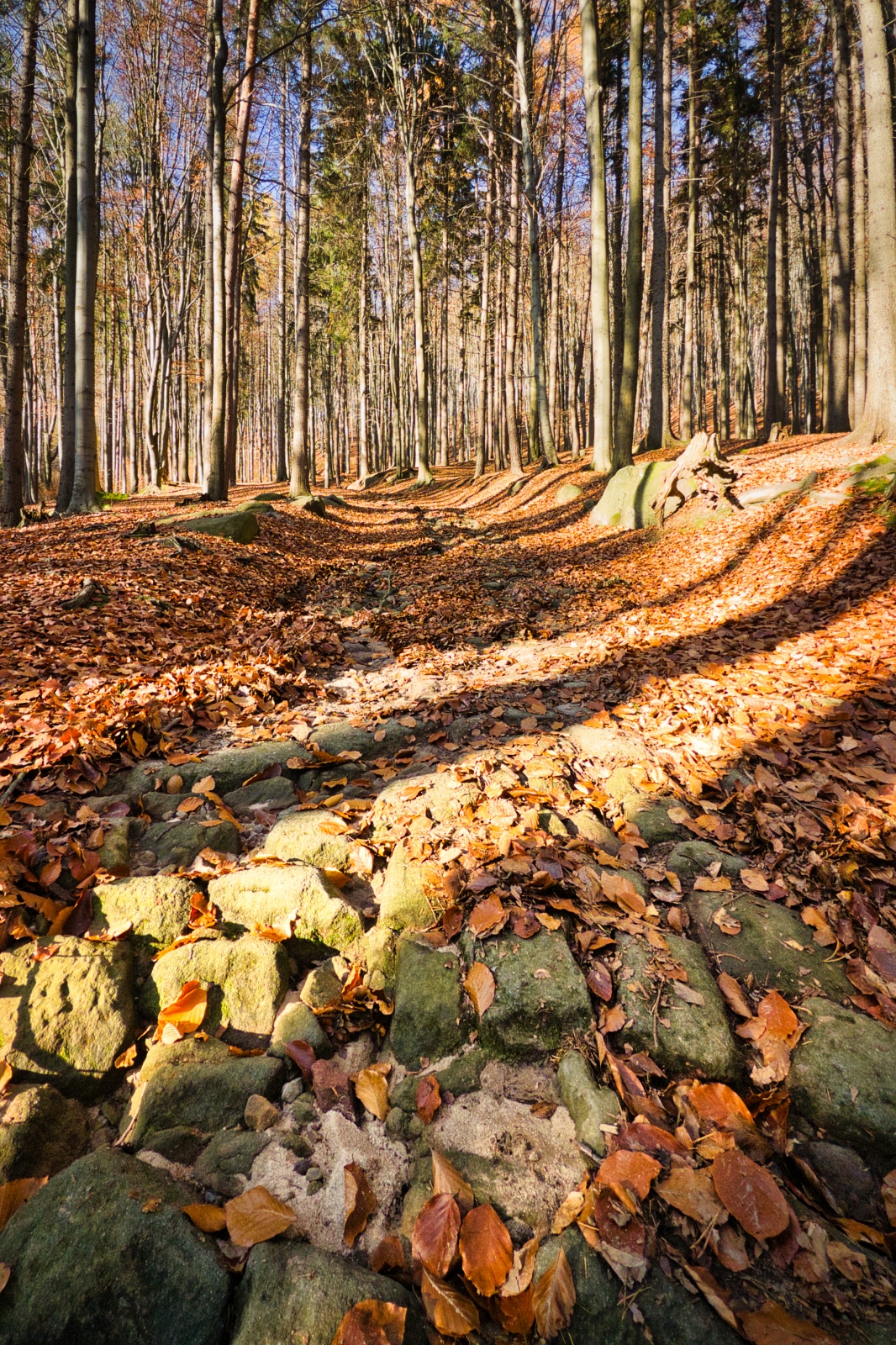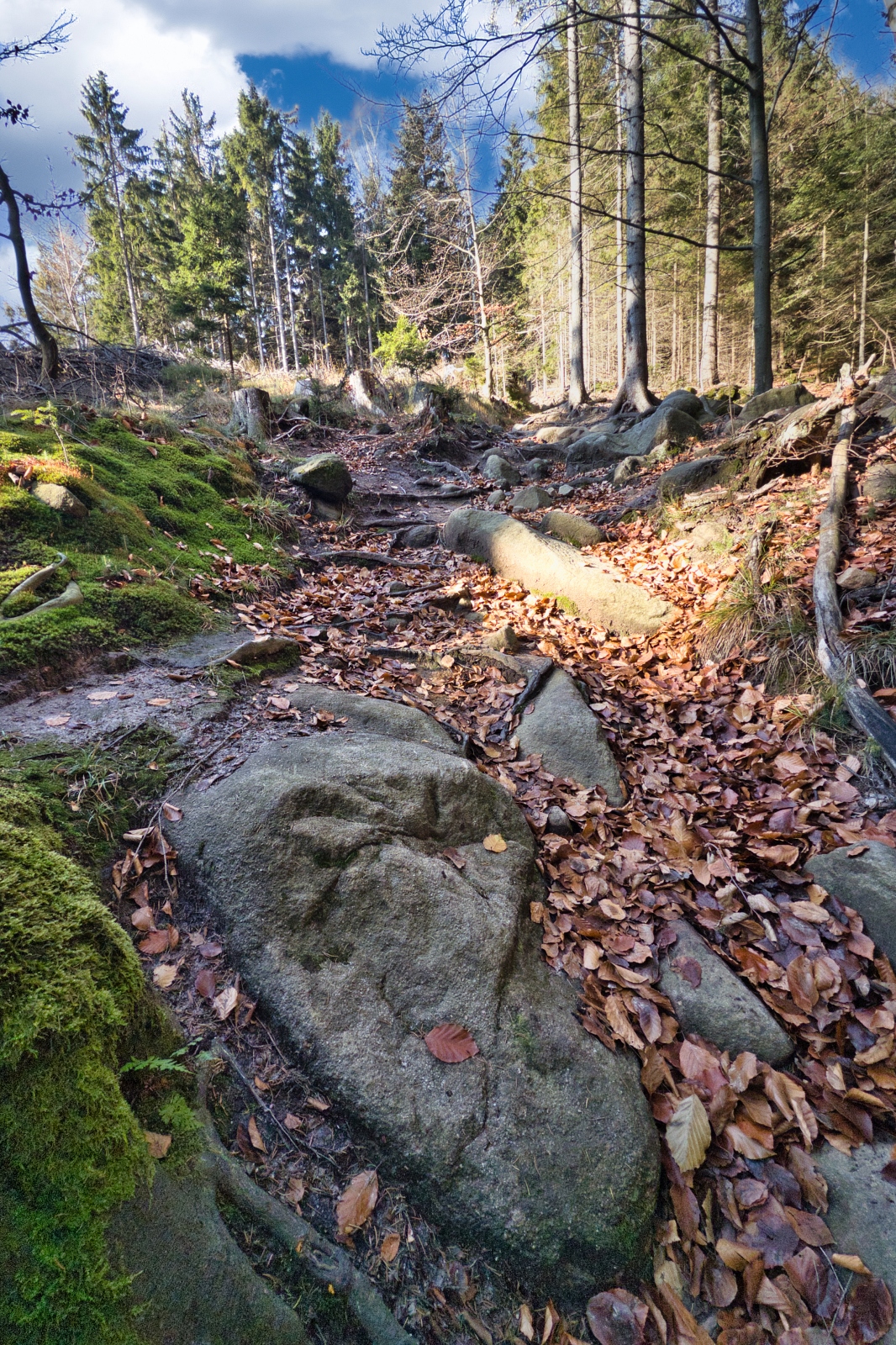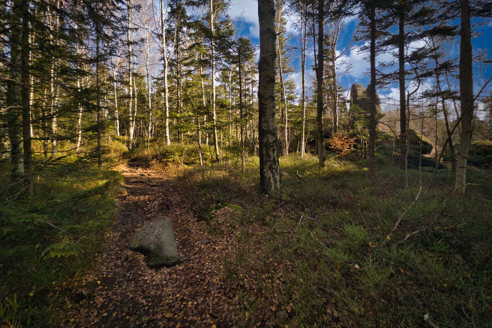 Po intensywniejszych skalnych atrakcjach szlak łagodnie sprowadza z powrotem do Božanova. Ten odcinek jest spokojniejszy, prowadzi przez las i pozwala złapać oddech po wcześniejszych podejściach. To idealny finał wycieczki — taki, który daje czas, by uporządkować wrażenia i nacieszyć się ciszą.