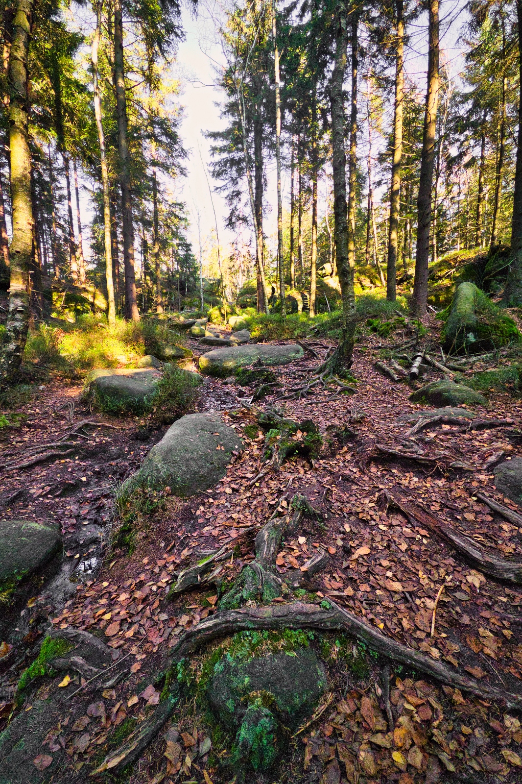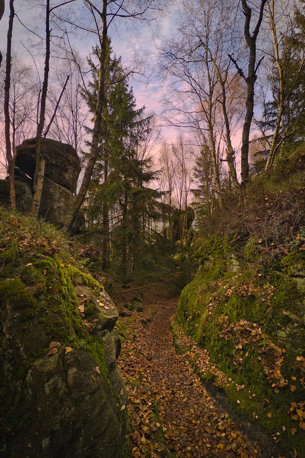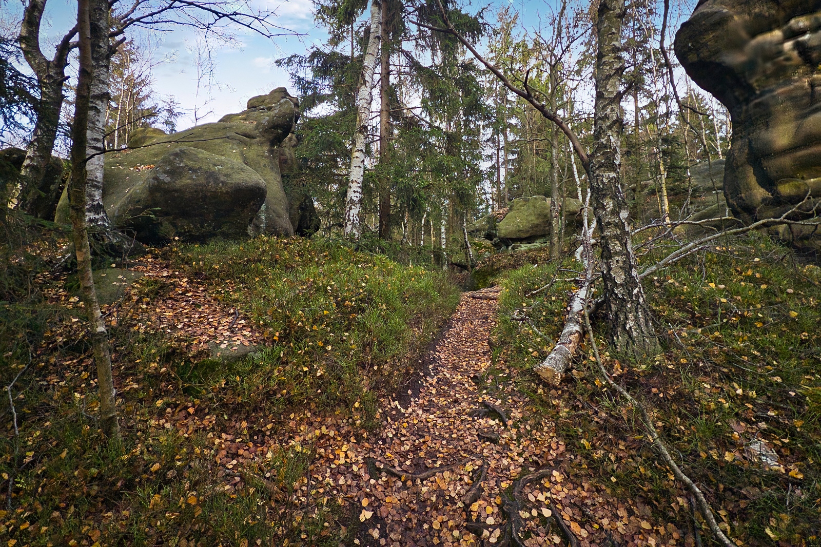 Odcinek do Sovího hrádku jest pełen skalnych niespodzianek: przewężeń, schodków, uskoków i widoczków, które pojawiają się między drzewami. To zdecydowanie jedna z najbardziej „górskich” części całej pętli.