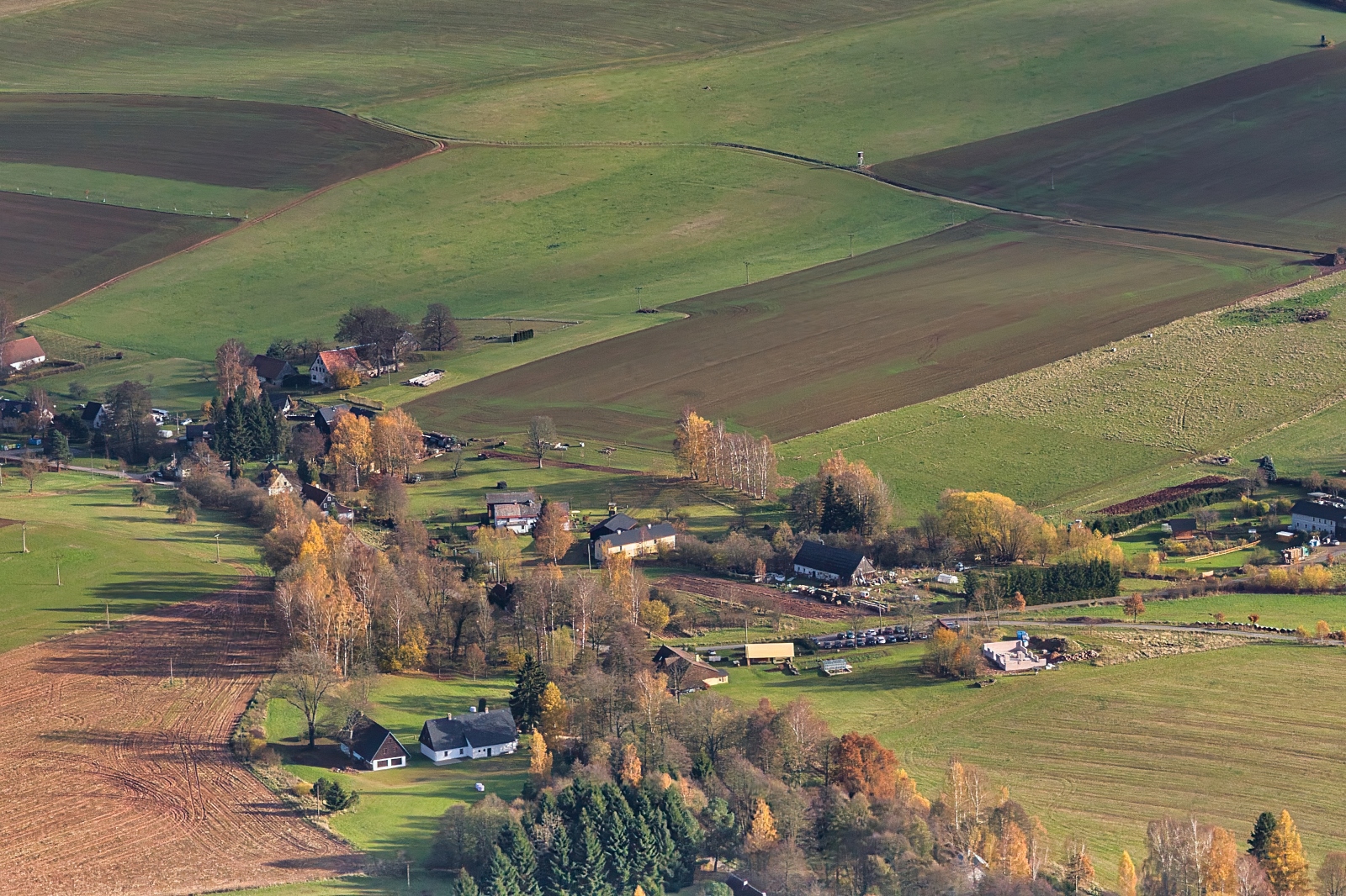 Wyruszamy z Božanova, niewielkiej i bardzo klimatycznej wioski. Szlak od samego początku prowadzi przyjemnymi ścieżkami w stronę pierwszego celu — Koruny. Jest spokojnie, sielsko, a krajobraz robi to, co robi najlepiej: wprowadza człowieka w wycieczkowy nastrój.