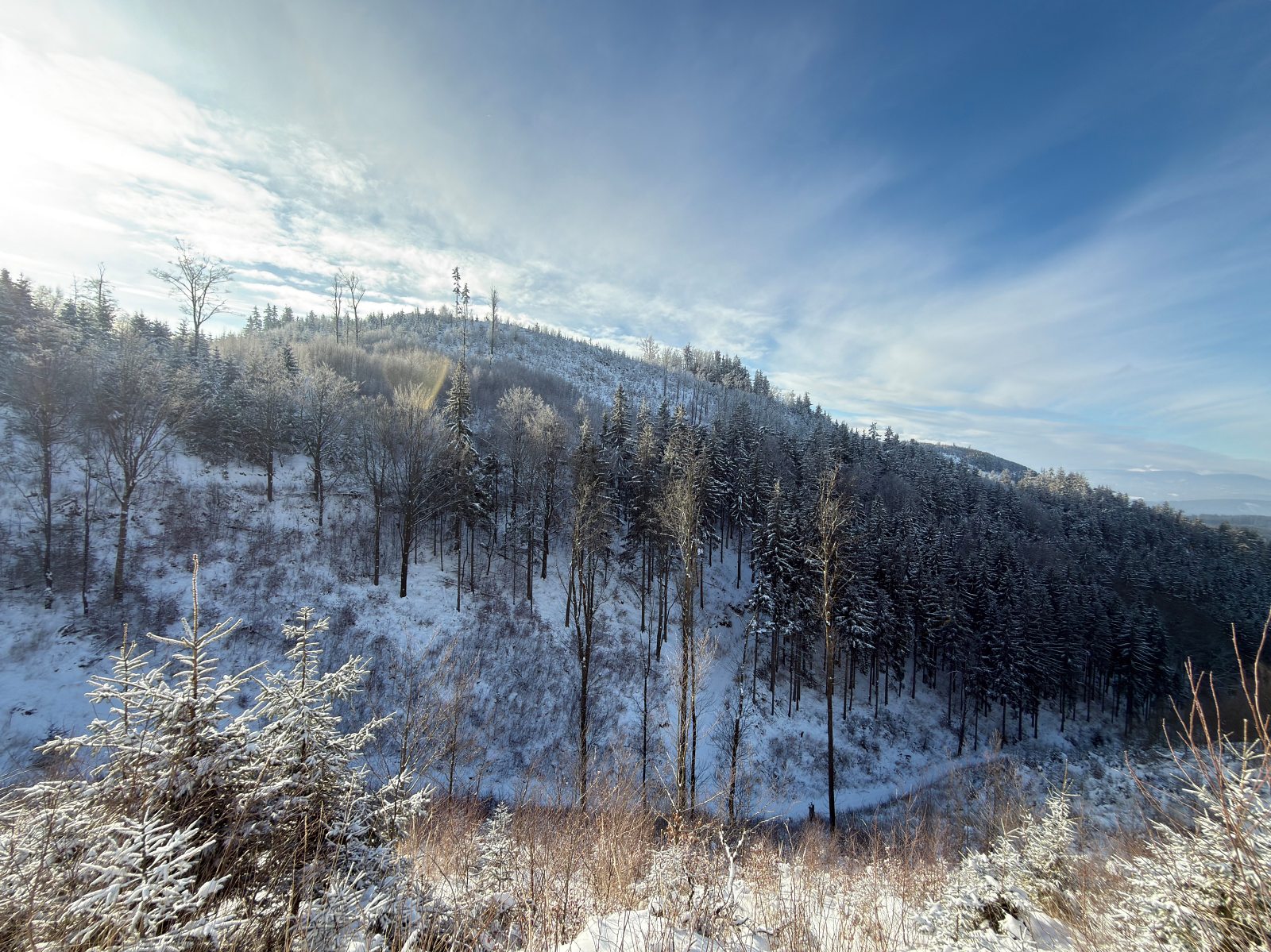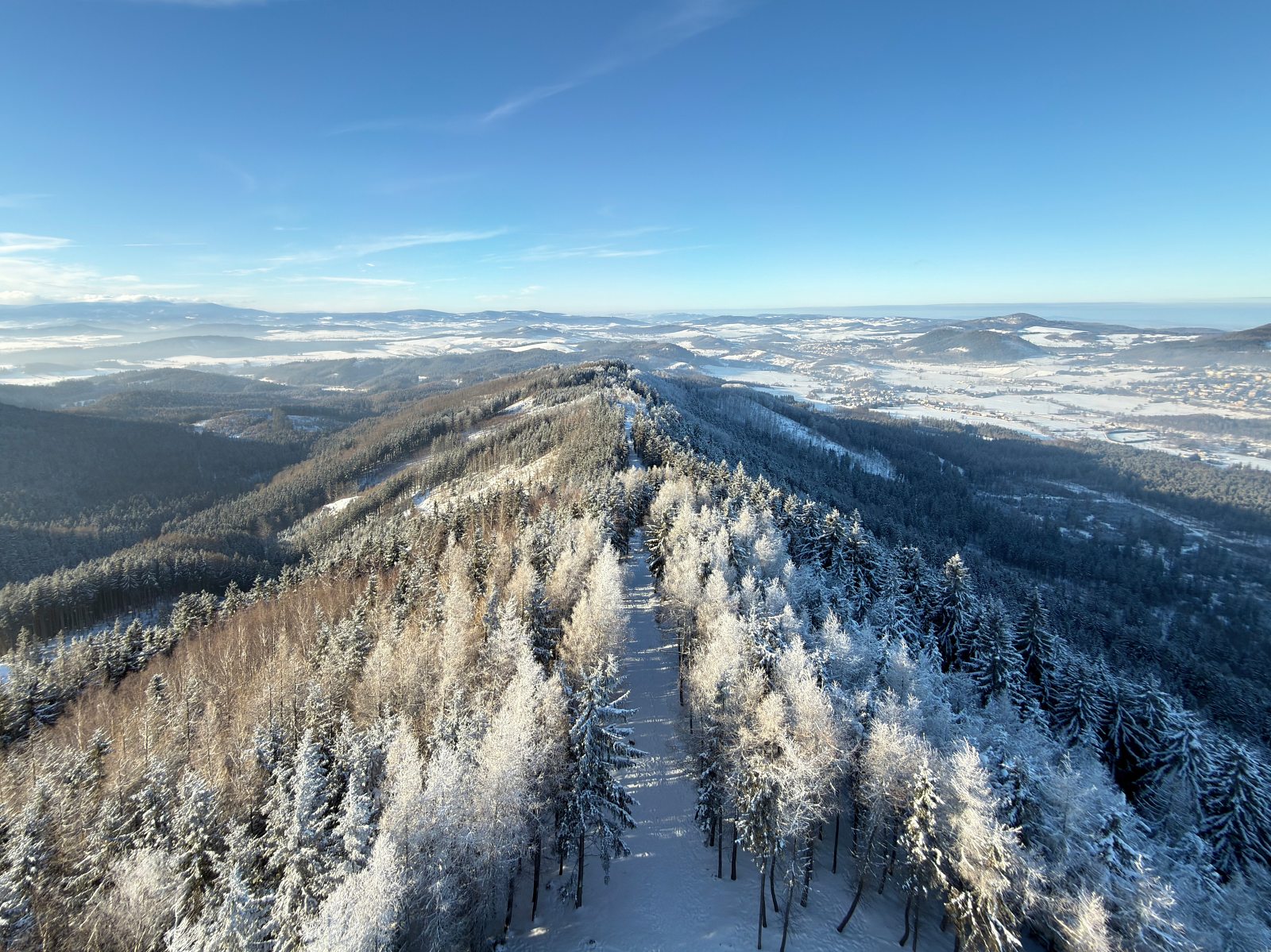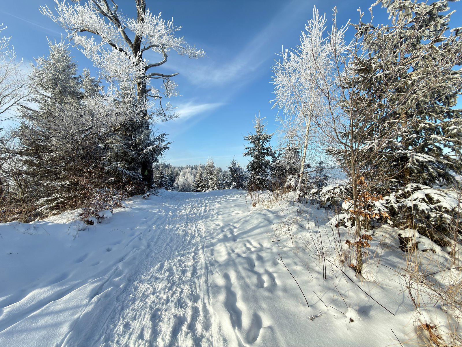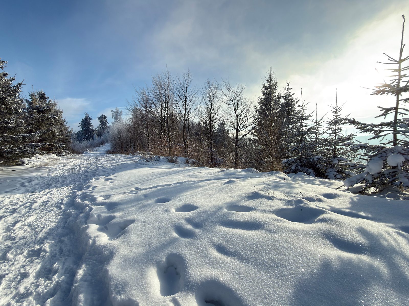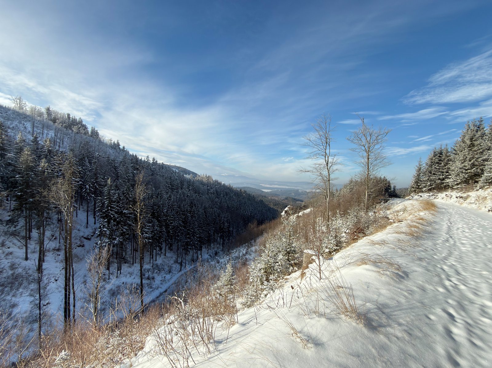Wiecie, jak to w górach: góra, dół, kawałek płaskiego i znowu pod górę. Dawno nie widziałem tak pięknej zimy – pewnie dlatego, że rzadko ruszałem się poza Wrocław. Tak czy siak, było obłędnie! Pełne słońce, tylko trochę chmur, a trasa w znacznej mierze prowadziła przez las. Klimat był po prostu jak z bajki.