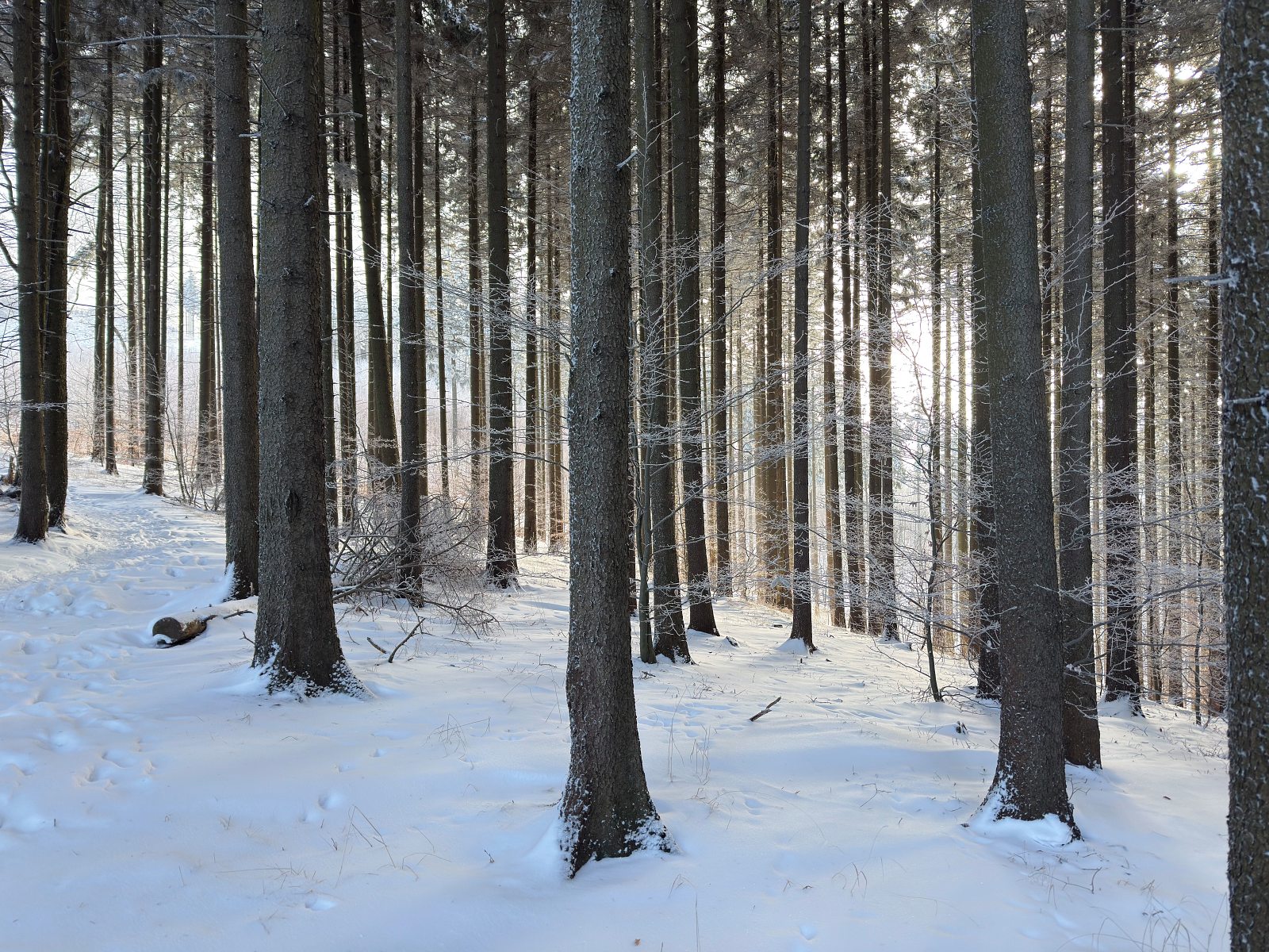 Nici z picia. Na szczęście, gdy tylko wszedłem między drzewa, wiatr ustał, a zza chmur wyszło słońce. Niestety, rurka nie rozmarzła już do samego końca wycieczki.